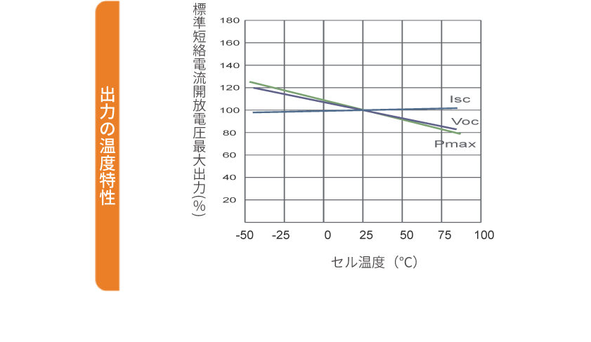 | 開放電圧の温度係数 | -0.25%/℃ |